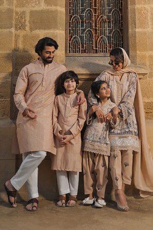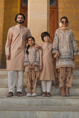 Elevate your style in our short box kurta adorned with a Dori embroidered border. Paired with an intricately embroidered shalwar and a medium silk dyed dupatta, this ensemble is a sophisticated statement.