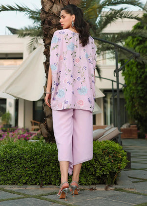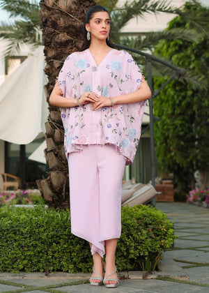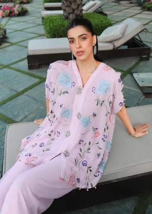 Description: Discover a uniquely crafted piece that guides you through a floral wonderland of vibrant embroidery. Its easygoing silhouette combined with corner-drop capri pants is ideal for any soirée.