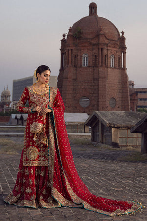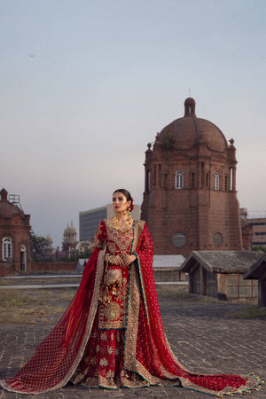 Chambeli is our sublime white and gold bridal ensemble that is just the perfect combo of traditional yet chic. The decadent gold embroidery on sublime pearl white base takes inspiration from the symmetric tilework and palatial archways reflected as the embroidery patterns all across the skirt, bodice and the sleeves. The ensemble features a coordinated dupatta with generous embroidered border featuring repeat pattern of elegant floral motifs across all sides.