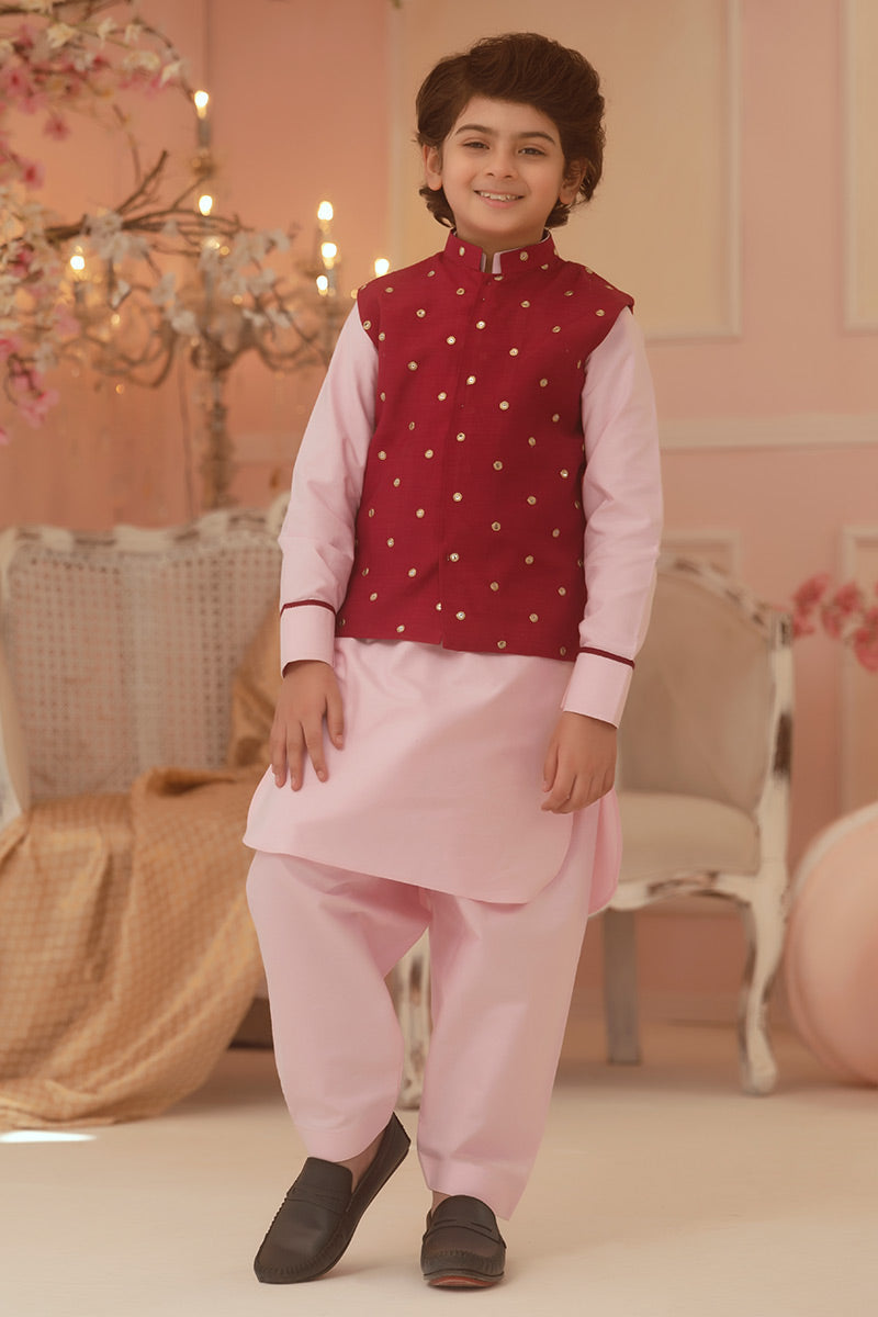 Waistcoat : Embroidered Rawsilk Shirt and Pant: Mix Cotton Fabric