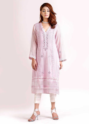 Description: Pure cotton net kurta with attached slip embellished with variety of laces and mirror work to perfection.