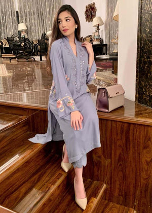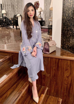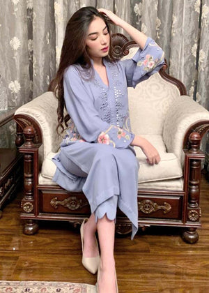 AF311 Pink Branches (Powder Blue) - Ainee Faisal