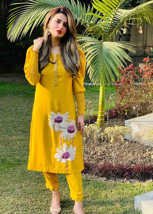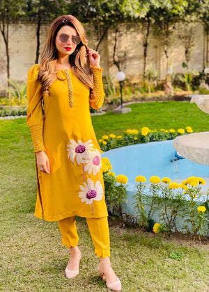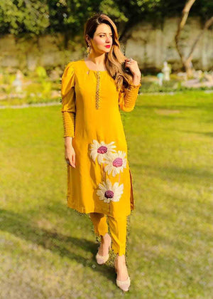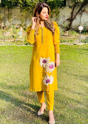 AF326 Mustard Yellow Statement Flower Mirrors - Ainee Faisal