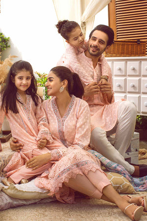 Powder Pink Schiffli Kurta paired with pants.Collection: Eid Edit'21