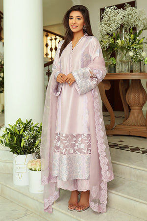 Lavender raw silk kurta with a laced izaar paired with an organza dupatta.Collection: Eid 21