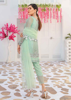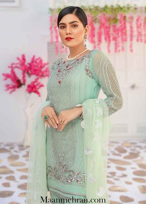 Description: Adorn a mesmerisingly classic formal look in our artistically crafted ensemble “Akoya Pearl” - a classic straight silhouette with a refined boat neckline, heavily hand embellished with semi precious stones, with a hint of crimson rouge to add a pop of color to this dreamy outfit. Paired with pure self silk tapered pants adorned with intricate hem work, and a classic net dupatta with 3D border embellishment.