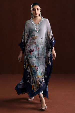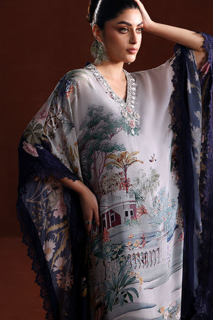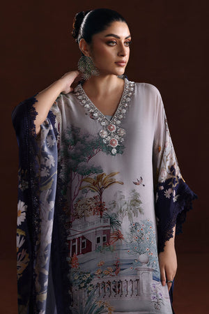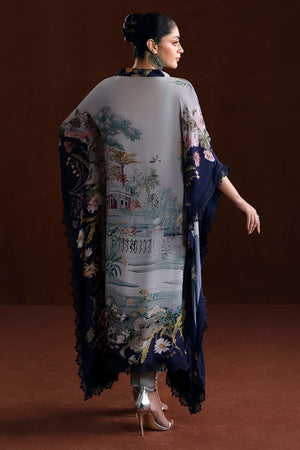 A sleek grip fabric shirt paired with Korean raw silk pants, blending shades of blue and grey for a modern, refined look—perfect for formal gatherings