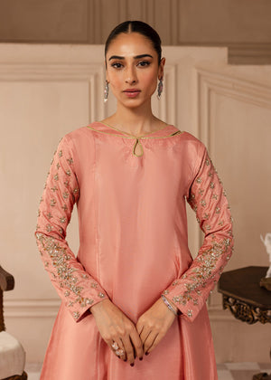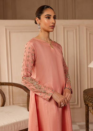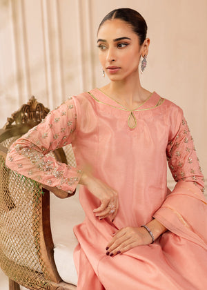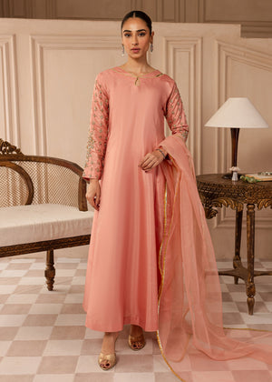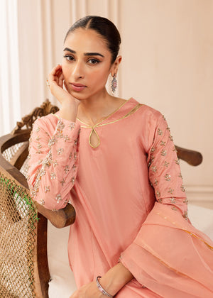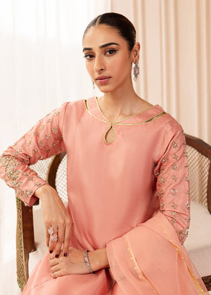 Impeccable craftsmanship and a modern silhouette. Alora is encrusted with delicate floral hand work. It comes with an Organza dupatta and tappered pants. An extraordinary look for an extraordinary woman.