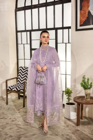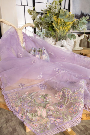 Embroidered Lawn Shirt Cambric Trousers Embroidered poly organza dupatta with extended multicolored pallu borders..