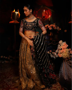 Gorgette all over sequin embelished saaree with a handwork pallo, borders and blouse.