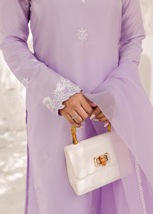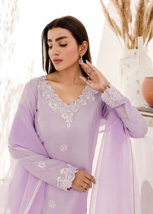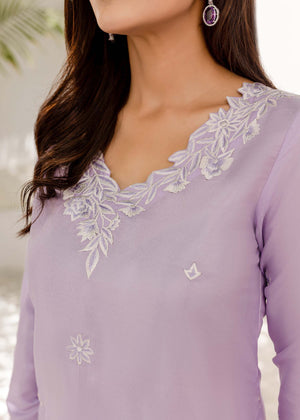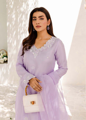 Featuring a breathtaking lilac-colored set adorned with intricate embroidery and sophisticated stitching details. Elevate your wardrobe with this 3-piece timeless ensemble and experience the enchantment of its beautiful details.