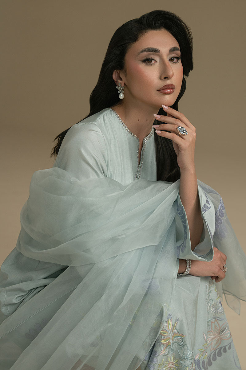 Radiating freshness and finesse, this aqua blue ensemble is a masterclass in modern elegance. The long shirt, tailored with sharp side slits, flows effortlessly to create a sleek and fluid silhouette. Unique embroidery sprawls across the fabric in a contemporary rhythm, punctuated by bold, eye-catching motifs that command attention without overpowering the look. Paired with minimalist separates, the design strikes a perfect balance between structure and softness. This outfit is a statement in movement, detail, and refined individuality.
