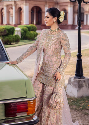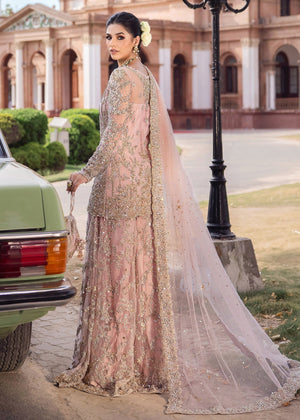 Unveil the perfect blend of classic elegance and modern sophistication with this exquisite ensemble. Comprising a net shirt, sharara, and dupatta, this outfit is a testament to timeless beauty and contemporary flair. The net shirt is adorned with intricate hand embellishments in shimmering gold and silver, creating a stunningly refined look. Paired with elegantly embellished net sharara pants, this set exudes grace and poise. The net dupatta, featuring a lavish border adorned with pearls and a delicate sitara spray, adds a touch of opulent charm. Ideal for those special occasions where you wish to make a memorable statement, this ensemble promises to envelop you in luxury and style.