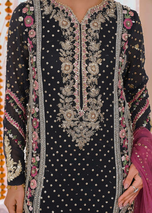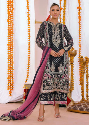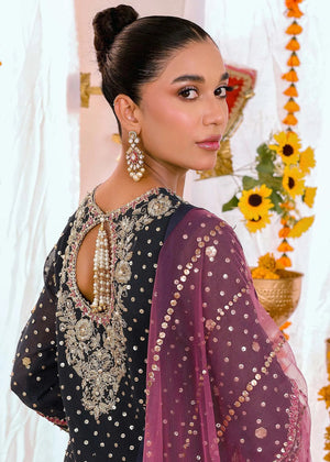 Harnesses the charm and finesse of floral pattern. This luxurious cotton net shirt is adorned with meticulous resham and sequins embellishments. The set is paired with embellished pants and delicately worked with a Mukesh dupatta. Make it a piece you will cherish.