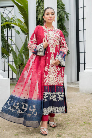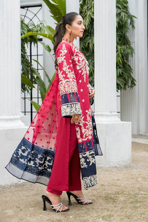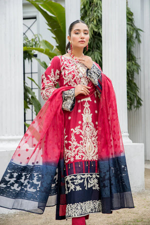 •Details:Fully Embroidered shirt front on lawn with embroidered sleeves on lawn, with matching pants with embroidered borders on lawn with 2 tone organza dupatta.