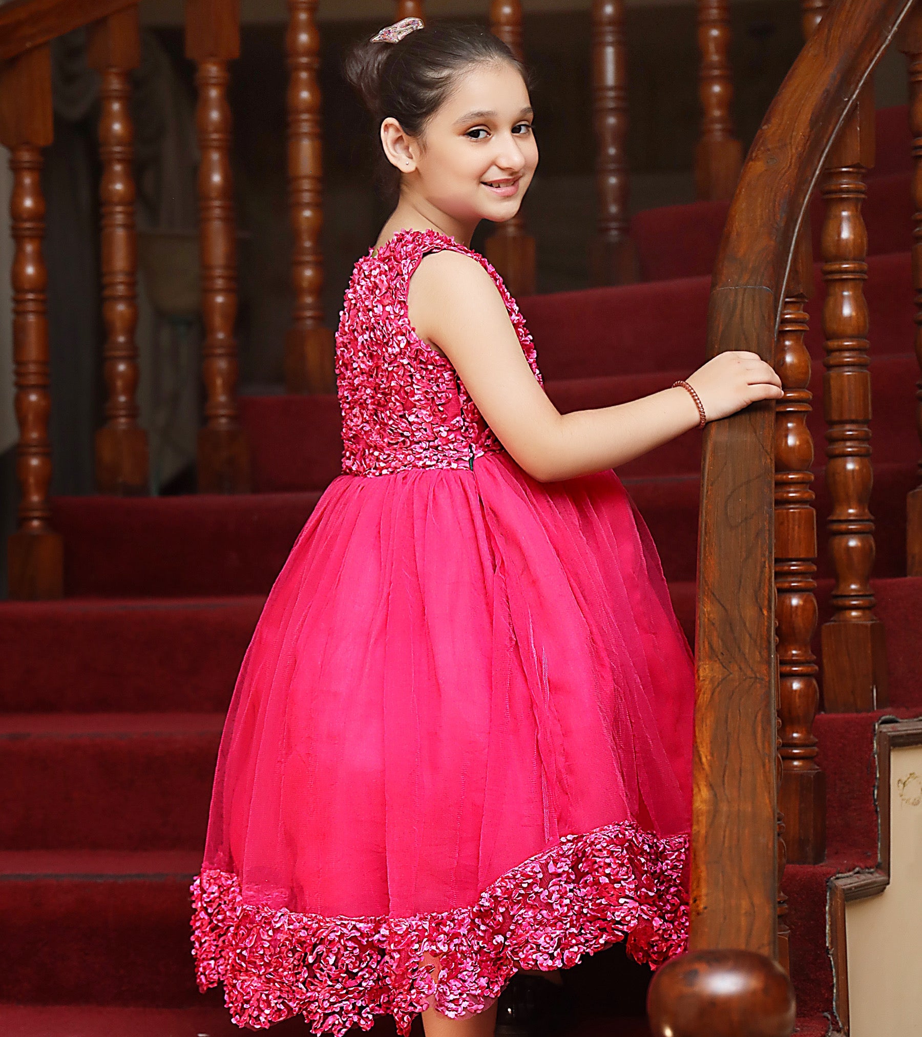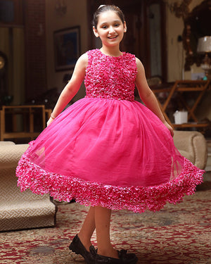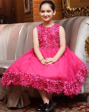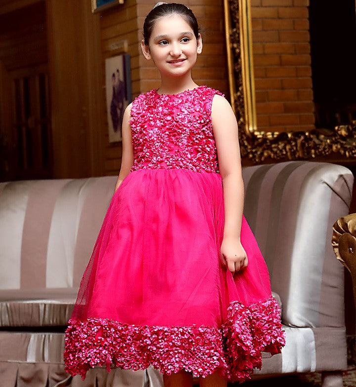 Let your darling be a comfortable playful princess in our blossoming shocking pink frock embraced with a floral design.