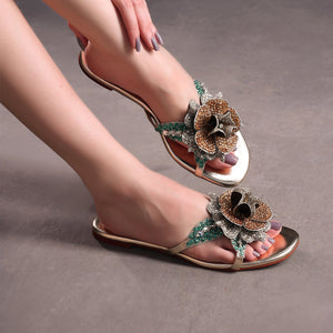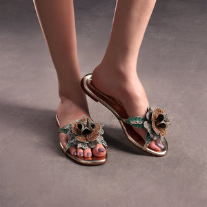 We designed the Beeba Flats with fairy tale atmospheres in mind by delicately covering the feminine silhouette with large, floating florals.