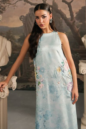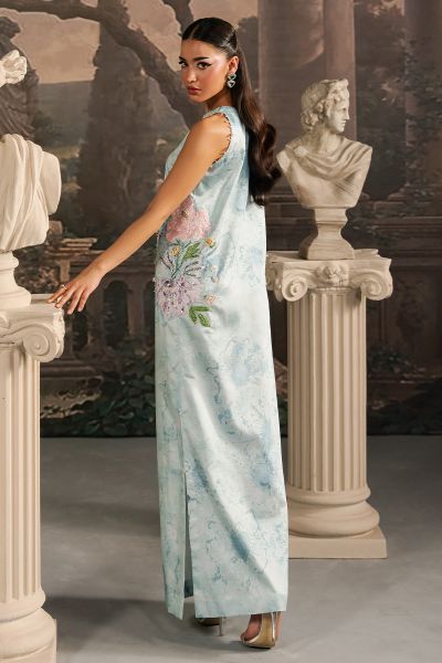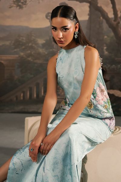 Bella is a vision of sophistication, crafted from digitally printed silk and elevated with intricate embellishment details that add depth and radiance to the design. The shirt’s refined ornamentation strikes a graceful balance between elegance and glamour, while sleek silk capri pants lend a modern edge. Together, these elements create a mesmerizing ensemble, destined to make you stand out effortlessly.
