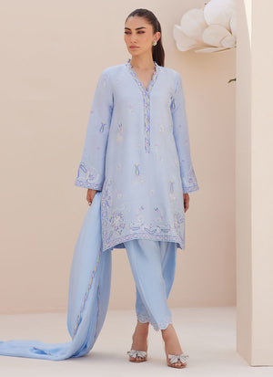 Bettie Cornflower Blue Shirt and Dupatta - Zaza'25 by Farah Talib Aziz