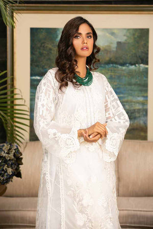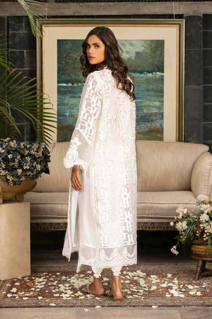 This beautiful white piece is an alluring design made from silk texture organza, the dress is sure to make an impression on others. Pair it with our embroidered straight fit pants or embroidered wide-leg culottes.(Includes Slip, Pants and Duppatta)Collection: KIARA EID'21