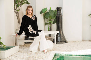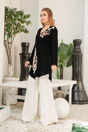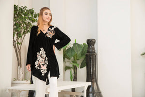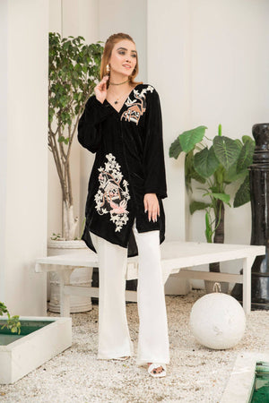 An exclusively embroidered front jacket on black with most delicate designs is a go to this season