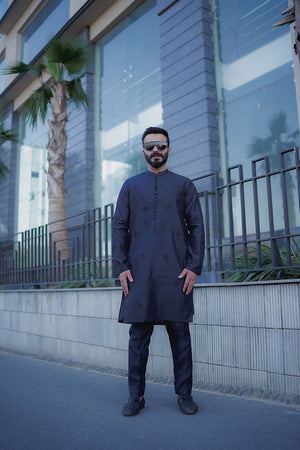 Black pure silk black kurta dazzled with intricately crafted baroque embroidery is your perfect Eid fit.