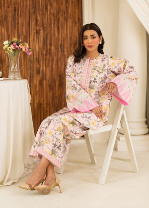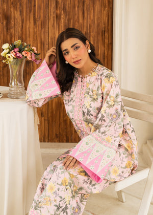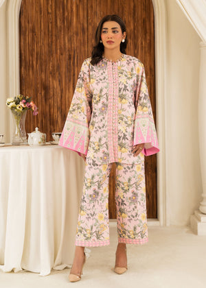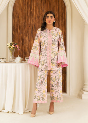 Turn heads and captivate with the rich elegance of this Floral blush pink set. Intricate pearl details and bell sleeves, this ensemble exudes elegance and sophistication