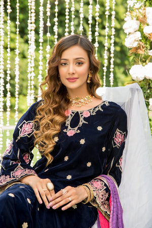•Details: Fully Embroidered Front with embroidered sleeves, two-tone dyed crushed dupatta with jamawar pants.