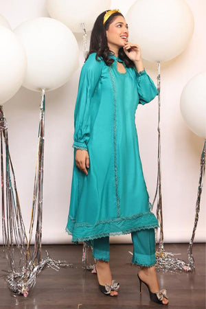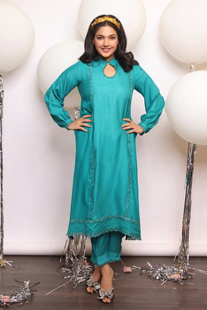 Delicate details; cut from cotton-net. this beautiful shirt is rendered with lace . Paired with matching straight pants. a must have set for this season.The shipping charges for all articles barring Bridals are as follows: