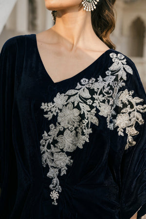 Say hello to the unique, luxurious Blue Moose! Featuring a premium velvet fabrication and fully tilla embroidered motif on the shoulder, this beauty exudes sophistication and elegance. With the perfect pleated front and back, expect this top to be your perfect accompaniment to any formal event.