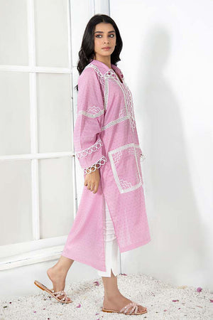 A pastel blush color loose fit is just what you need, with Embroidered asymmetric hi-low cut.