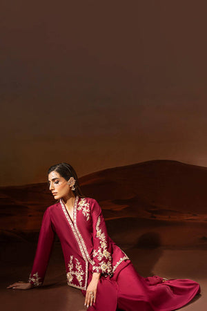 A sticking short jacket crafted from pure raw silk, embodying a perfect fusion of modernity and elegance. Adorned with intricate ivory embroidery and exquisite hand embellishments, this piece is designed to elevate the entire look with its refined artistry. Versatile in its styling, it can be paired with a sleek, contemporary sarong for a bold statement or with a classic shalwar to maintain an effortlessly elegant appeal. A true head-turner for any occasion.