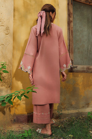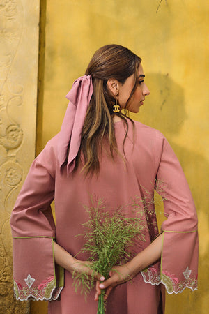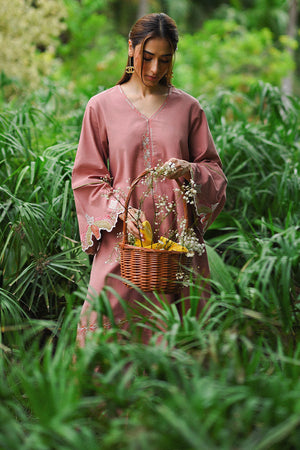 This exquisite ensemble features a mid-length shirt and culottes, both adorned with intricate embroidery details. The cutwork detailing on the sleeve adds a touch of modern elegance. The harmonious combination of patterns and textures creates a visually striking and sophisticated look.
