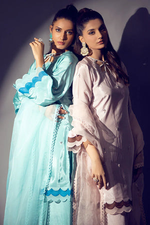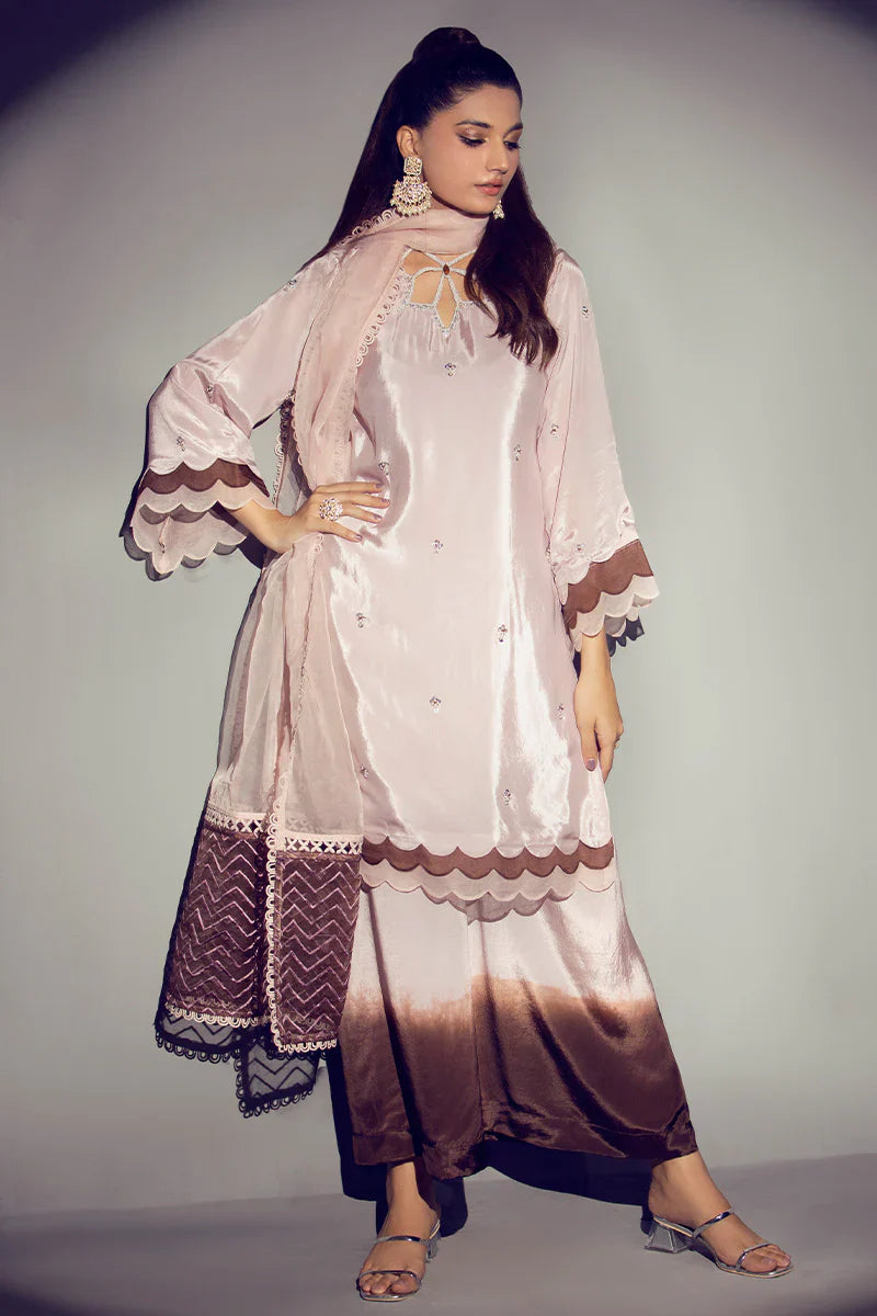 Premium Russian silk embellished with handwork of cutwork details, pearls, kora and stones beautified with 3 colors of organza scalop border on sleeves and daman paired up with tie and dye cuolettes styled with organza dopatta having contrast color organza embroidered borders with laces on edges. Length of shirt is 38 inches and cuolette is 38 inches.Model is wearing size small and her height is 5'8. Weight of this product is 1 kg