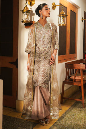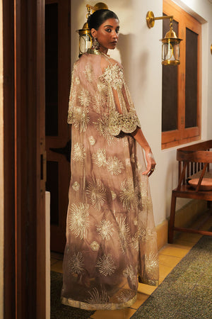 Embrace the regal splendour with our "Chaman" donned in the enchanting lilac gray hue. This stunning formal outfit comprises a meticulously hand-embellished shirt, featuring modern materials that include nakshi dabka, adding a contemporary touch to a classic design. The gown, crafted from delicate organza, is adorned with sequins embellishments, casting an ethereal charm. The shirt, made from sheer net, complements the ensemble with its elegant simplicity. Chaman is a perfect choice for those seeking a graceful and modern formal look, blending tradition with contemporary flair in a captivating lilac gray hue.