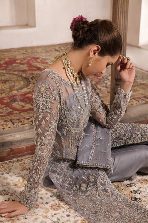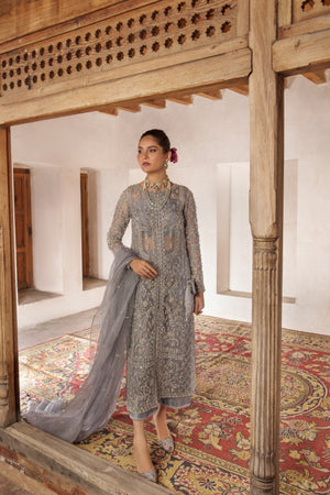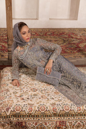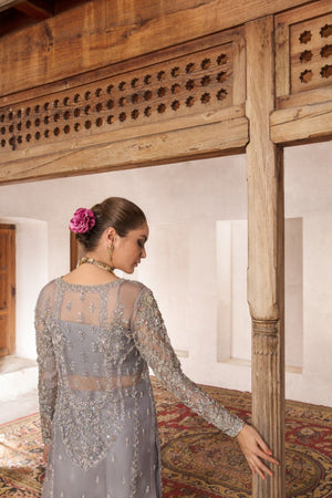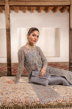 This hand-embellished attire is expertly designed with a seamless fusion of traditional aesthetics and modern style. The dress' serene and mellow shade of grey exudes an aura of understated elegance that will enchant. The hand embellished attire is a genuine work of art, adorned with elaborate and delicate embellishments precisely handcrafted by expert artisans. These embellishments subtly highlight the neckline, sleeves, and front of the dress, adding a sense of glamour and beauty to its overall appearance. It portrays classic elegance and sophistication when worn with contemporary culottes and a stunning dupatta.
