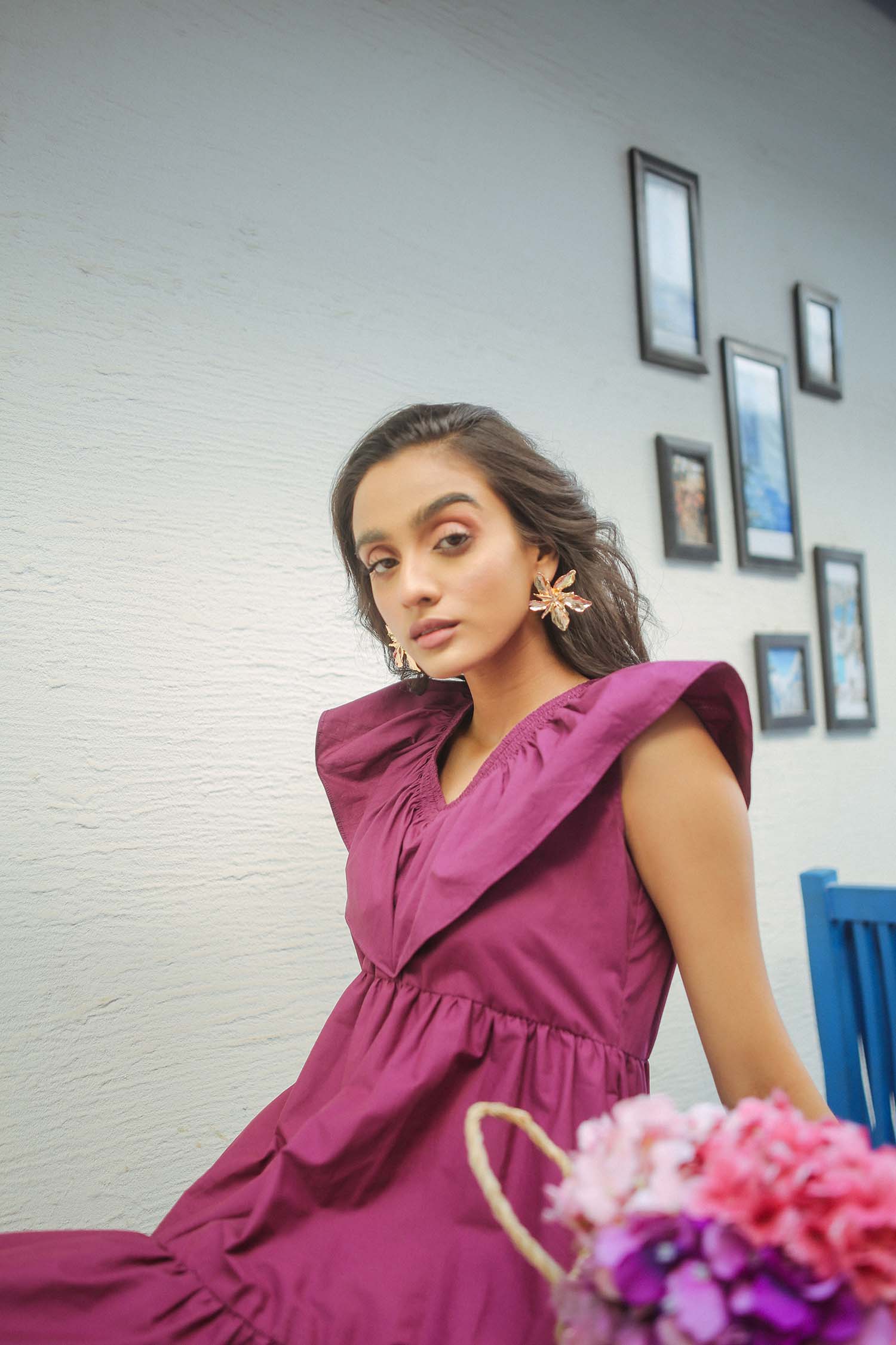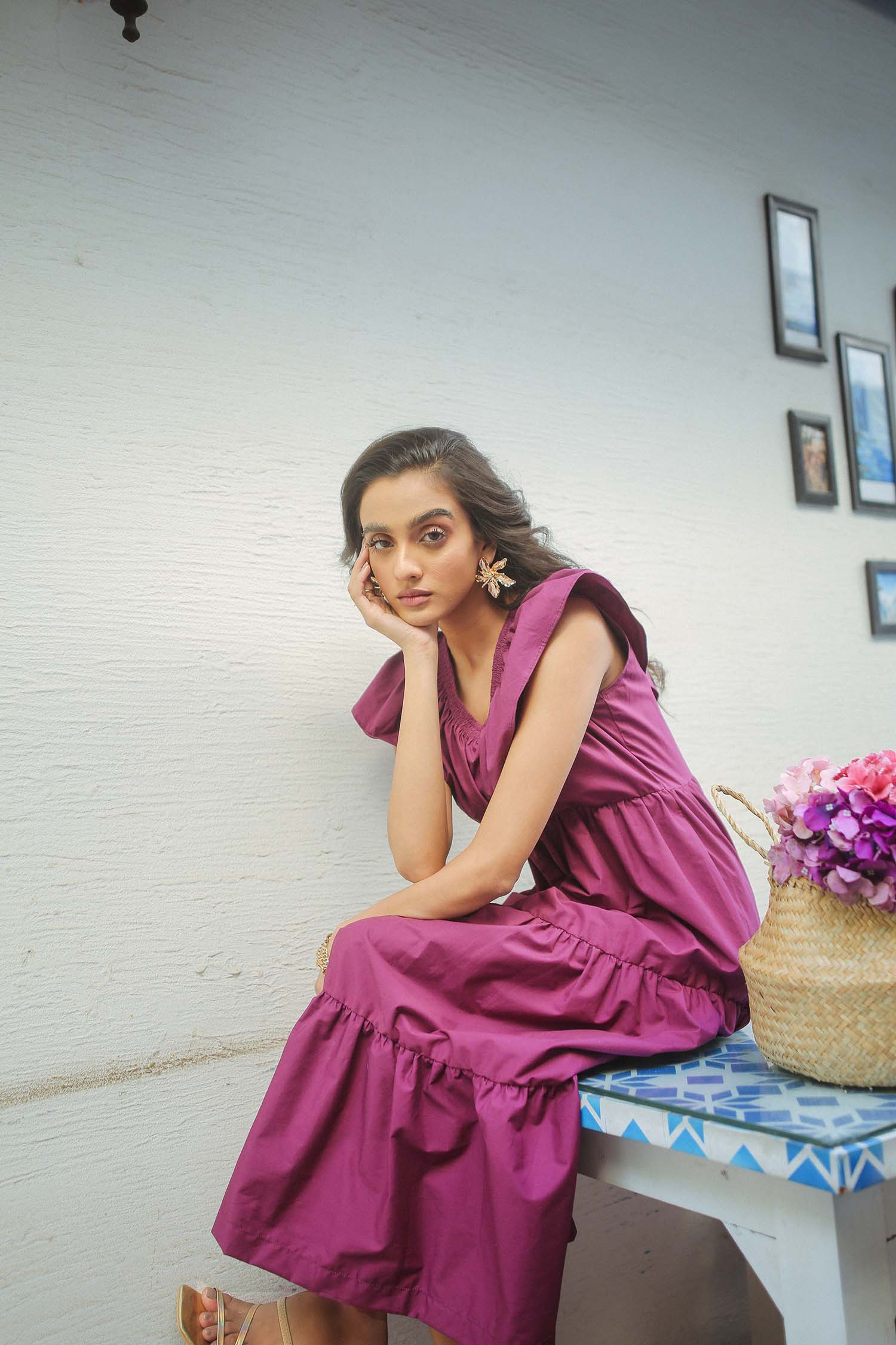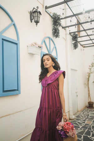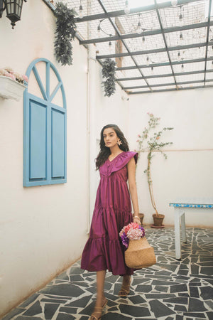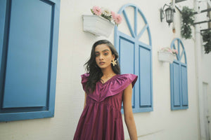 Did someone say it's summer? Don't worry, we've got you covered with this purple summer dress with frilled details and pleats all over it! Pair this beauty with a perfect summer bag and shades to take up the summer challenge! Material: Cotton Model is wearing small size.