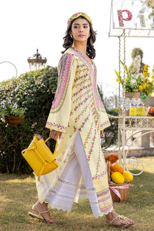 A lemon cotton base with a most unusual geometrical lemons and rose print makes this outfit stand apart. The loose and long cut of the kurta lends to the laid back summery vibe.