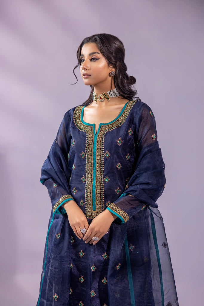 This ravishing pishwas is rendered in a beautiful shade of pink composed on pure net with an intricate and exquisite detailed adda work of sequins, beads, nakshi and dabka makes truly an artwork. Pure net body adds a touch of ethereal charm, elevating the ensemble to new heights of elegance. To complete the look paired it with net dupatta composed of heavy chatta in the middle and four sides border gives an ethnic regality.