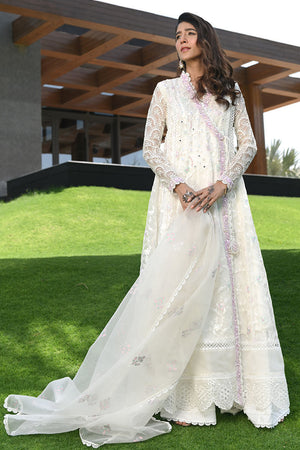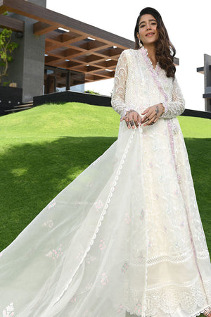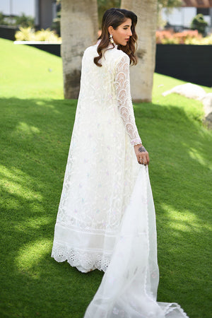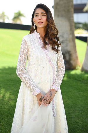 An embroidered organza kalidar with schiffli borders, touch of mirror work paired with straight pants and block printed organza dupattaThe shipping charges for all articles barring Bridals are as follows: