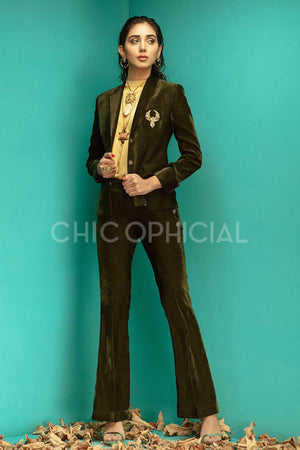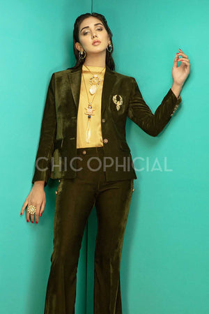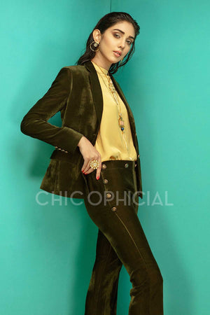 Olive Contrast Detailed Blazer - Chic Ophicial