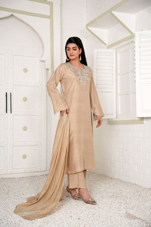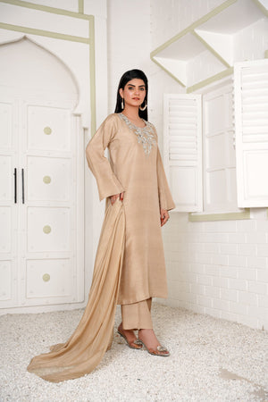 Elevate your with this beautifully crafted with intricate details using nakshi, dabka and pearls. Paired with silk dupatta and trousers.