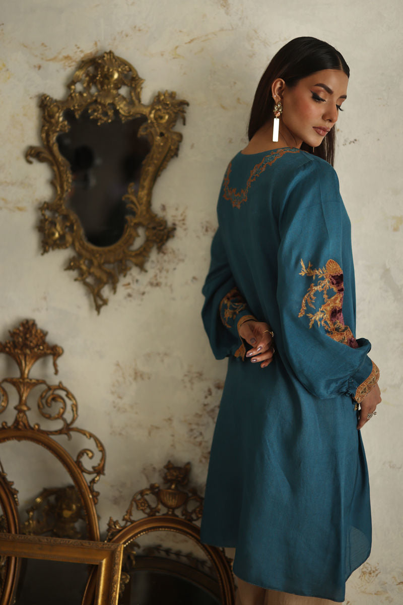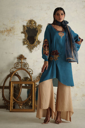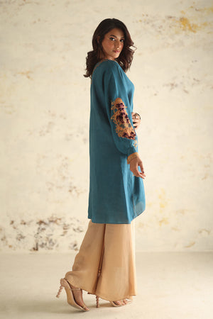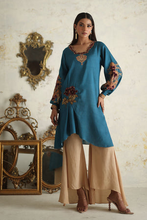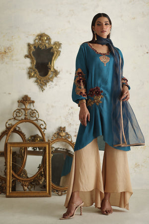 Simple yet sophisticated, this textured pink canvas, subtly adorned with hints of print, transitions effortlessly from daytime to evening soirees. The double-layered silhouette of the shirt, featuring floral embroidery and appliqué details, elevates it to a stunning ensemble that promises to leave a lasting impression.Comes with a Pant.