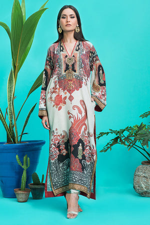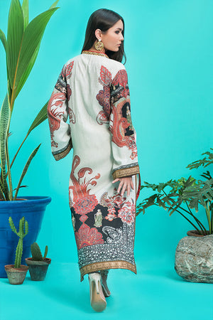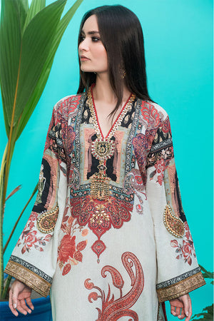 Straight original shamaeel silhouette beautiful traditional design printed in rich colours on silk fabric. Mughal inspired motifs placed uniquely on ivory canvas Delicate handmade gallah patti crafted with gotta work. Beautiful handmade gallah and sleeves motifs crafted with resham thread, dapka, naqshi, beads, stones, pearls and sequence work.The shipping charges for all articles barring Bridals are as follows: