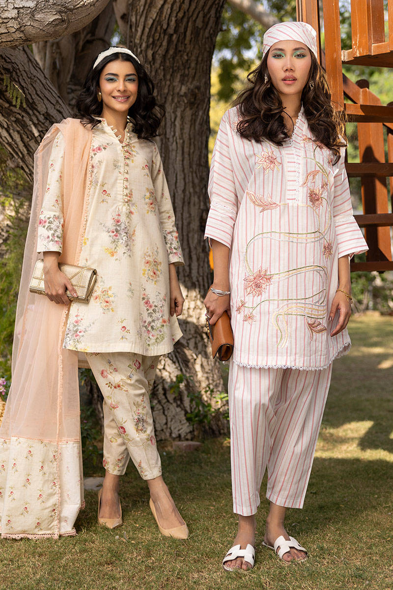 Feel effortlessly cool in a striped cotton co’ord set with whimsical dahlia embrodiery