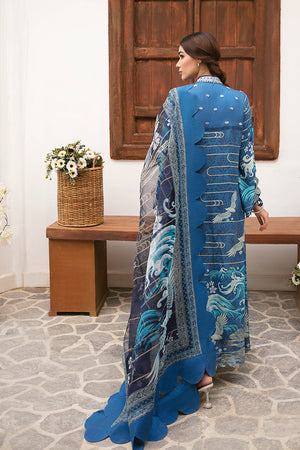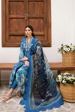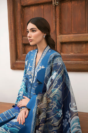 Dark Blue Pure Crepe long Digital Paint shirt. It has beautiful hand embroidry on neckline