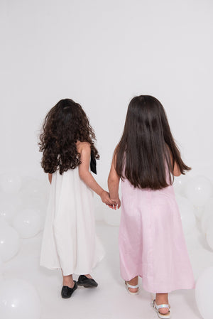 Introducing the "Mia Bow Maxi Mini" for your little one – a delightful fusion of charm and elegance. The highlight of this adorable ensemble is the pristine white bow, adding a playful accent to the overall design.