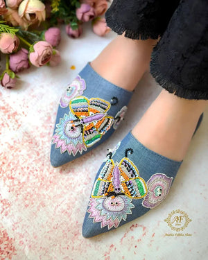 Denim Butterfly Mules in Patels - Anabia Fabiha