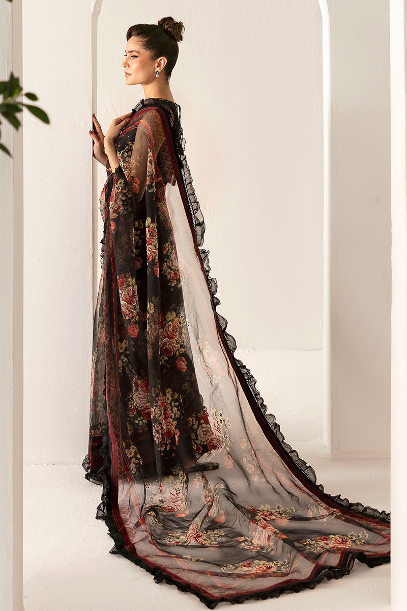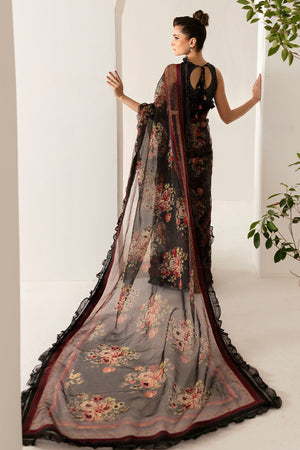 A striking black printed saree featuring intricate designs that captivate with every fold. The bold prints create a mesmerizing contrast, exuding elegance and style.