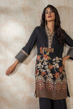 Embroidered shirt in silk fabric offers a flattering and comfortable fit, with a slightly relaxed silhouette. Inspired by floral and Persian art to captivating the look. Front is handworked with pearls, sitara and dabka and crafted handworked motif in front. Can be paired with flared pant or straight trouser to complete the look.